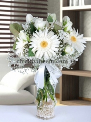 erzurum palandöken çiçekçilik KIRMIZI NAPOLİ VAZODA 9 AD BEYAZ GÜL