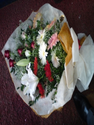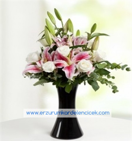erzurum çiçekçilik PEMBE GÜL VE LİLYUM ARANJMANI