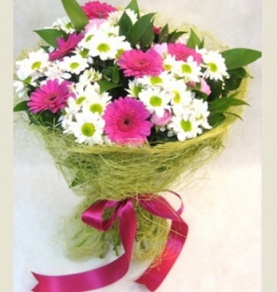 CAM VAZODA 5 BEYAZ GÜL VE GELBERA