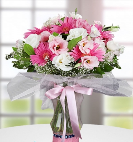 Erzurum daki Çiçekçiniz FANUSTA BEYAZ GÜL VE GELBERA