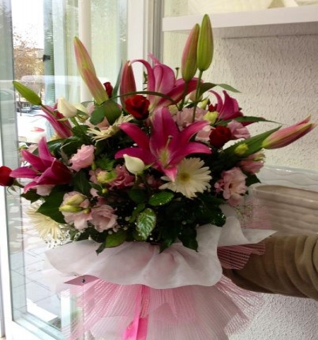 4 AD LİLYUM VE KIR ÇİÇEKLERİ İLE HAZIRLANMIŞ GÜZEL BİR BUKET
