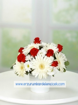 erzurum yakutiye çiçekçilik SARI PAPATYA VE PEMBE GELBERA BUKETİ